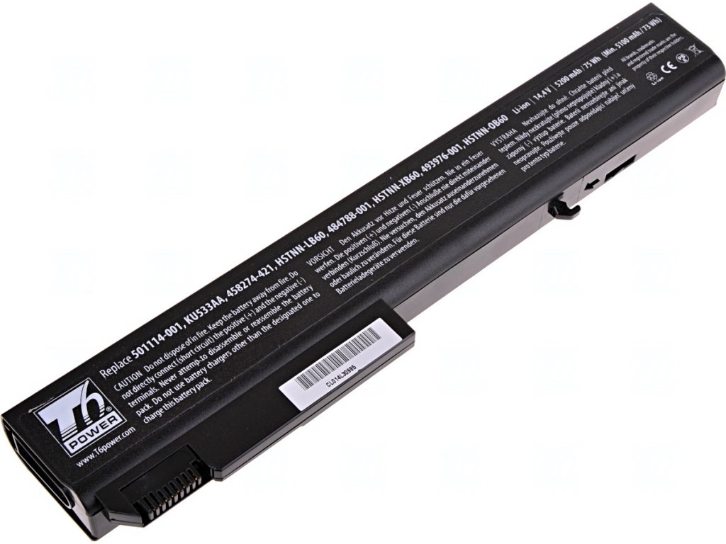 Baterie T6 Power pro notebook Hewlett Packard 458274-421, Li-Ion, 14,4 V, 5200 mAh (74 Wh), černá