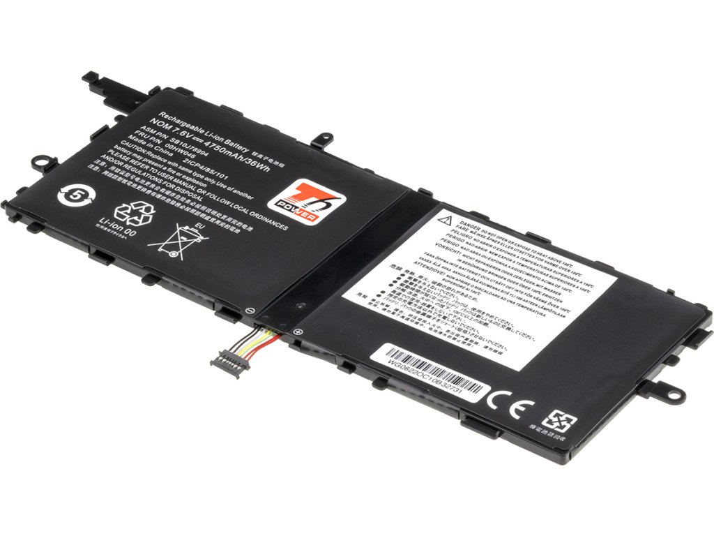 Baterie T6 Power pro Lenovo ThinkPad X1 Tablet Gen 1 20GH, Li-Poly, 7,6 V, 4750 mAh (36 Wh), černá